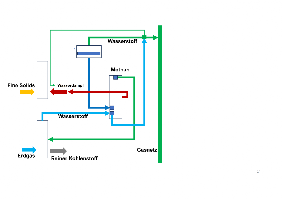 Das aus der Wasserdampfvergasung gewonnene Wassergas wird in Kohlenmonoxid und Wasserstoff aufgetrennt. Dazu wird eine Druckwechseladsorption verwendet. Neben Kohlenmonoxid gewinnt man auch noch geringe Mengen an Methan und Kohlendioxid. Das Kohlenmonoxid wird mit Wasserstoff zu Methan und Wasserdampf synthetisiert. der Wasserdampf wird beim Abkühlen als Kondensat gewonnen. Dieser Prozess ist stark exotherm, sodass die bei der chemischen Katalyse abgegebene Wärme zudem in Wasserdampf umgewandelt wird.
